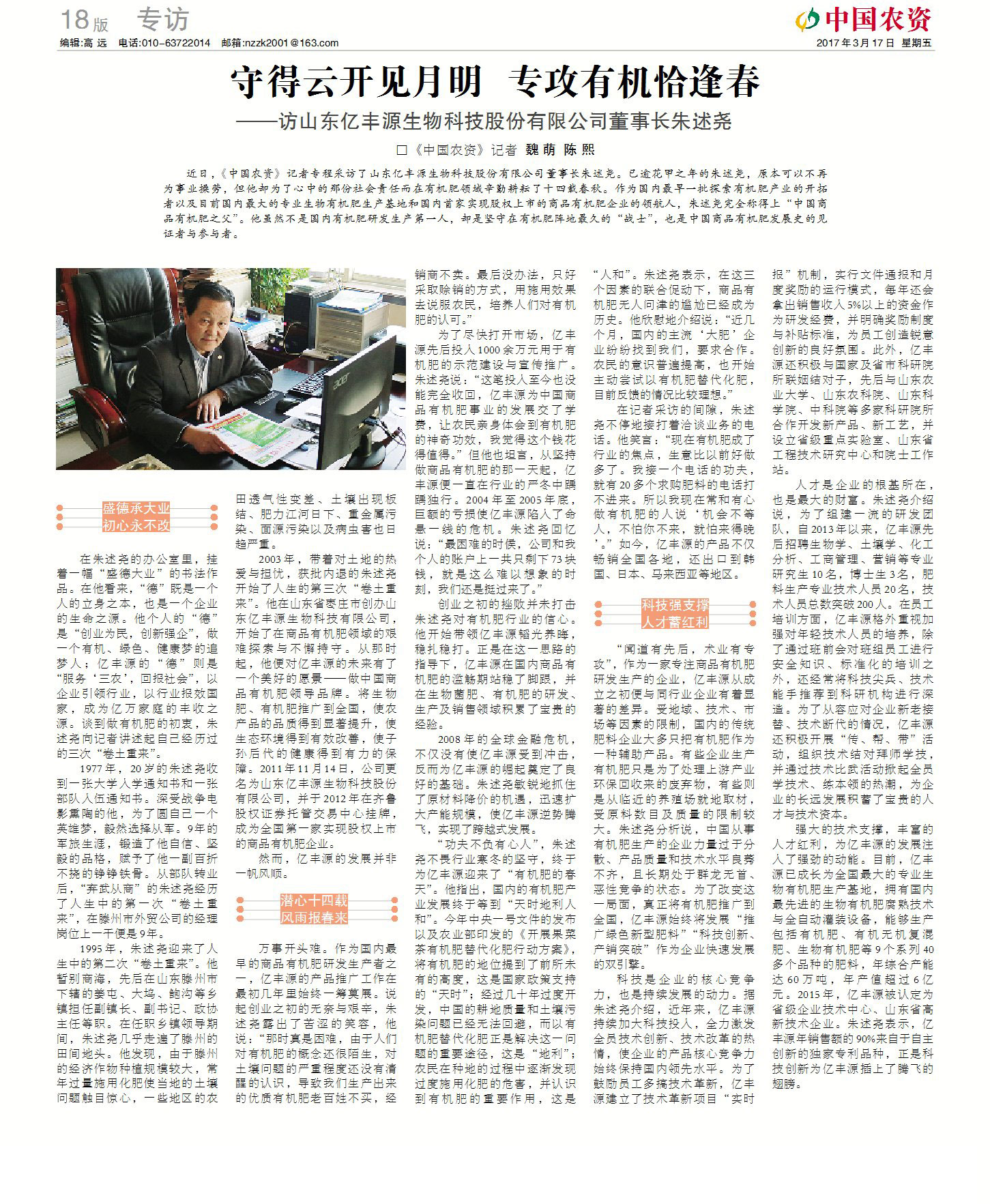 《中國農(nóng)資》專訪董事長朱述堯